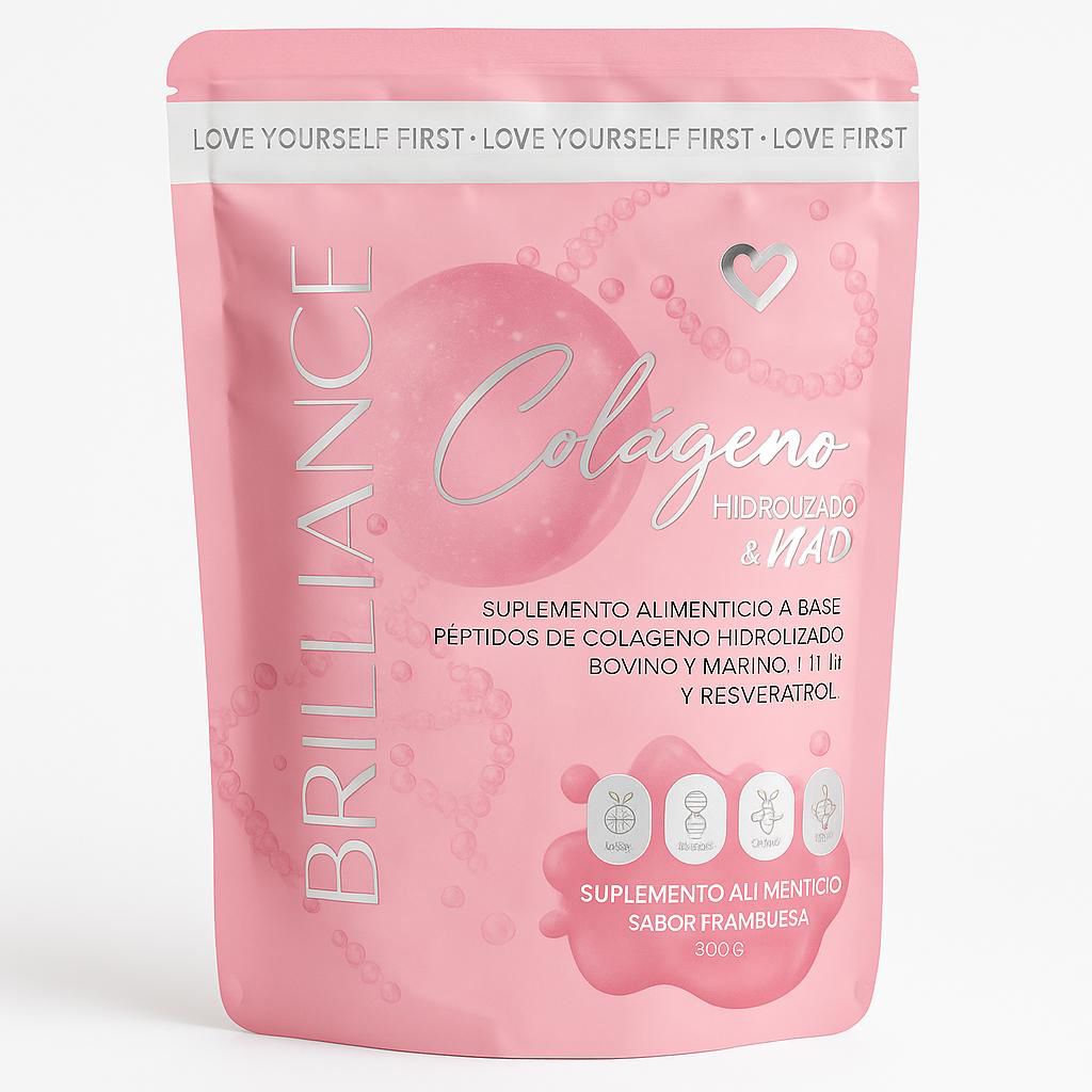 No es solo colágeno… es tu nuevo ritual de amor propio. Brilliance es un suplemento alimenticio con sabor frambuesa que combina péptidos de colágeno bovino y marino tipo I, II y III con superingredientes como biotina, ácido hialurónico, resveratrol y vitaminas esenciales que tu cuerpo ama. Todo en una fórmula deliciosa que se disuelve fácilmente en agua o tu bebida favorita.